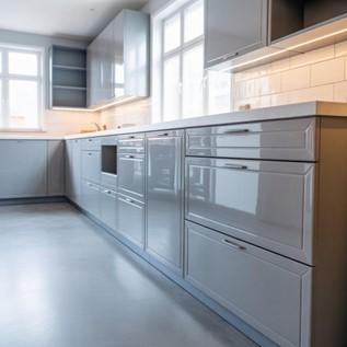 Glossy and reflective, adding luxury appeal to kitchens with modern aesthetics.
